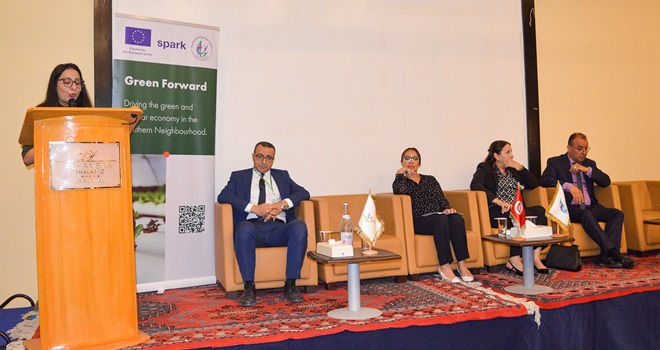 De son côté, Mme Afef Ajengui, responsable du programme régional Green Forward au niveau méso chez SPARK, a rappelé que « Au niveau méso, Green Forward vise à renforcer la capacité des OSE à favoriser les partenariats publics-privés, à relier les dialogues politiques et stratégiques à la préparation d’un terrain propice à une économie résiliente, verte et inclusive, et à améliorer l’accès au financement vert ».