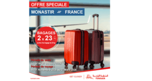 Tunisair annonce une franchise bagages exceptionnelle entre Monastir et la France.